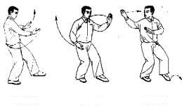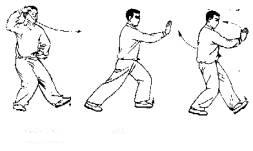 | 一、复习太极拳的基本步型和身形、起式。 步型的重点:前进、后退都走弧形步。 步型的难点:由腿的曲伸来移动重心。 身形的重点:头顶、含胸、拔背、收腹、松腰。 身形的难点:在整套太极拳练习过程中都要保持头顶、含胸、拔背、收腹、松腰。